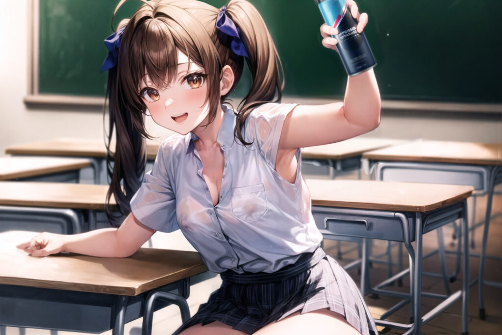 涼しげな朝、夏服、登校、始業前の教室…等々、